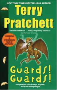 Here there be dragons...and the denizens of Ankh-Morpork wish one huge firebreather would return from whence it came. Long believed extinct, a superb specimen of draco nobilis ("noble dragon" for those who don't understand italics) has appeared in Discworld's greatest city. Not only does this unwelcome visitor have a nasty habit of charbroiling everything in its path, in rather short order it is crowned King (it is a noble dragon, after all...).